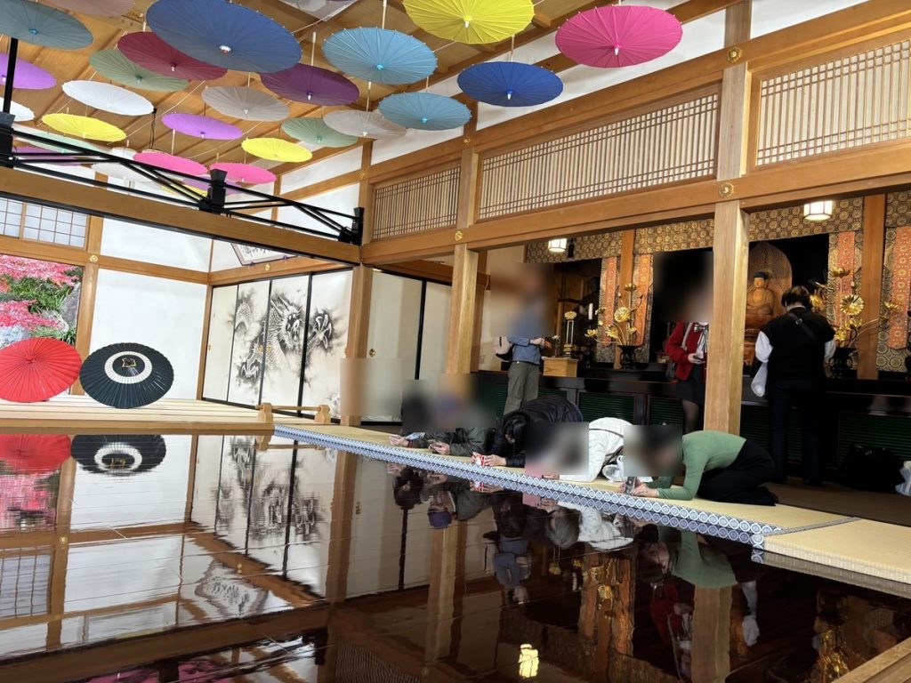 The moment you step into the grounds, you can’t help but think, “Wait… this is really a temple, right?” — it’s filled with a huge number of colorful Japanese umbrellas.
