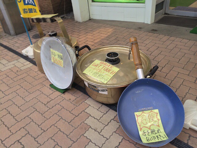小樽市は両親の街で、漁業関係者も多いからか、どデカい鍋やフライパン、ヤカンまで。これなら、大人数の来客でも対応出来ますね。
