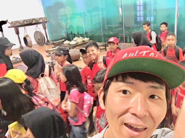 ファタヒラ広場付近にある博物館。地元の小学生と一緒に社会見学?みんな人懐っこいなー。インドネシアの神様たちもたくさん。