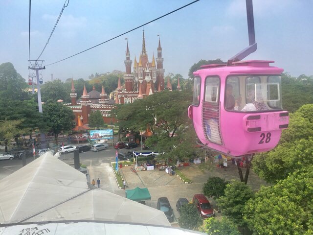 そして、到着。インドネシアをコンパクトにした、テーマパーク。ここで遊べばインドネシア全土に行った気分になれるそうな。しっかし、広すぎてパーク内で車移動が可能w とんでもないでかさで、暑いし、途中でリタイア?たくさん撮った写真も消えてなくなるし、最悪だー!
