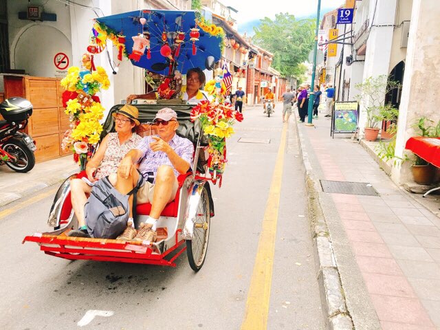歩くのに疲れたら、トライショーという人力車で街を巡るのも楽しいかも!
