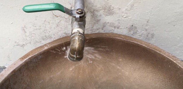 蛇口も古いタイプで、水を出すと周りに飛び散り、水をまともに組めない。