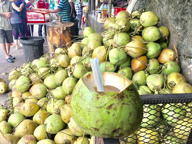 地上に降りて、喉乾いたからココナッツをいただきます!ぬるい…味も薄い。