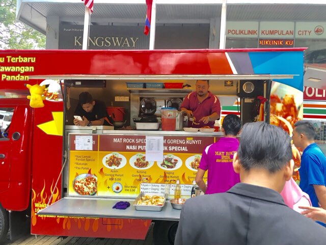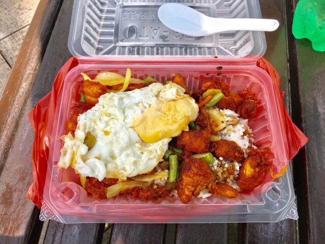 ペトロナスツインタワー付近に移動して、近くの移動車弁当屋で何やらスパイシーなの食べる…辛い?そして、夜になり…