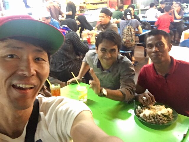俺を囲むように地元民が座るw 何でここに座るw せっかくやから、話かけてみると、色々食物分けてくれたTerima Kasih?