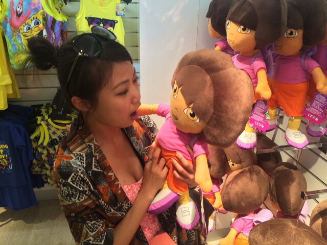 台湾美女は胸に名前を書いて欲しいと言われたので、ちょっとドキドキしながら名前を書いた。