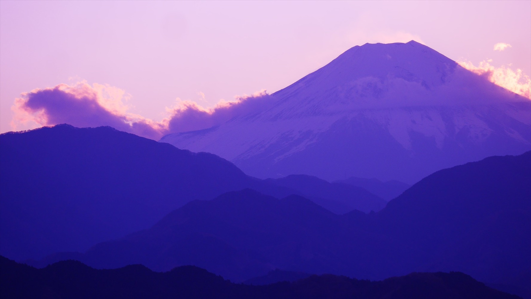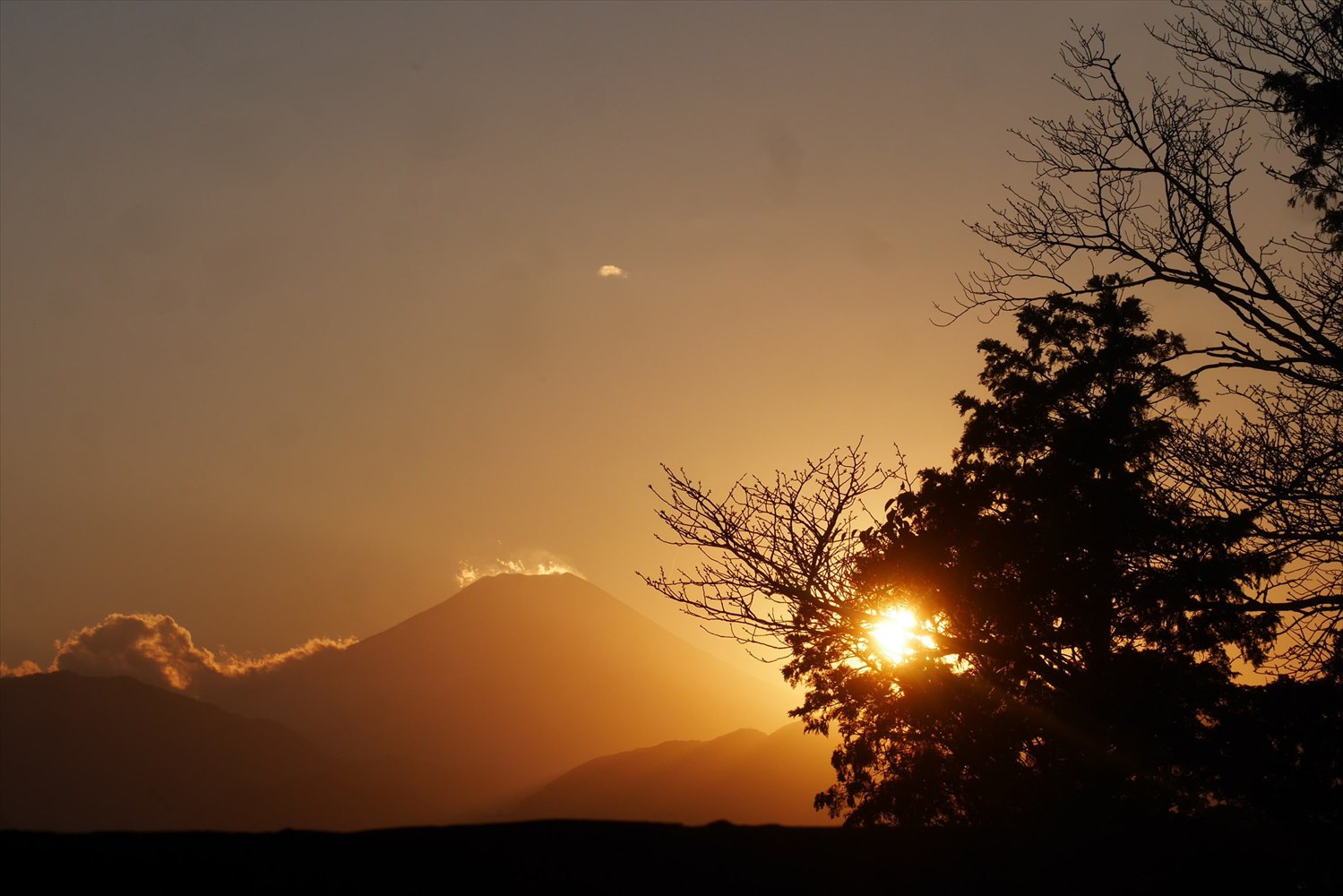 え?赤富士?こんなところからすごい色の富士山に出会えるなんて遅く来たかいがあった?!