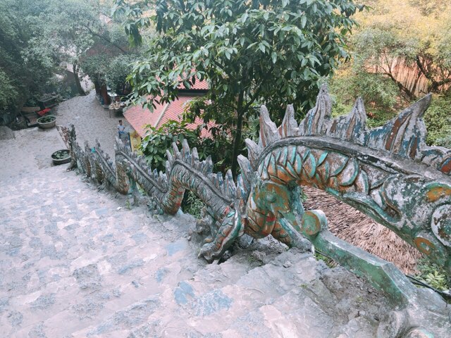 ニンビン駅からバイクで15分の距離にある。私は駅前でチャリを借りて行きました。(チャリで行く距離ではない、みんなバイク借りてた)急な階段をひたすら登りたどり着いた景色は圧巻。