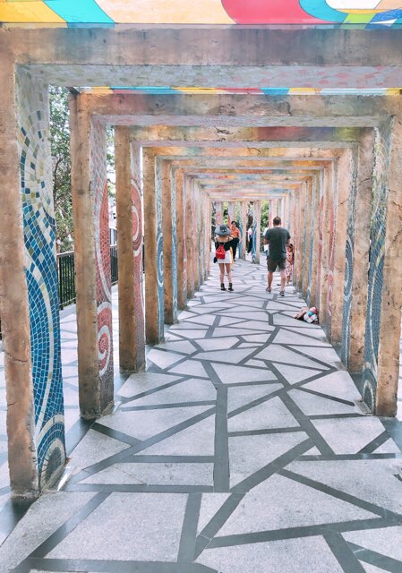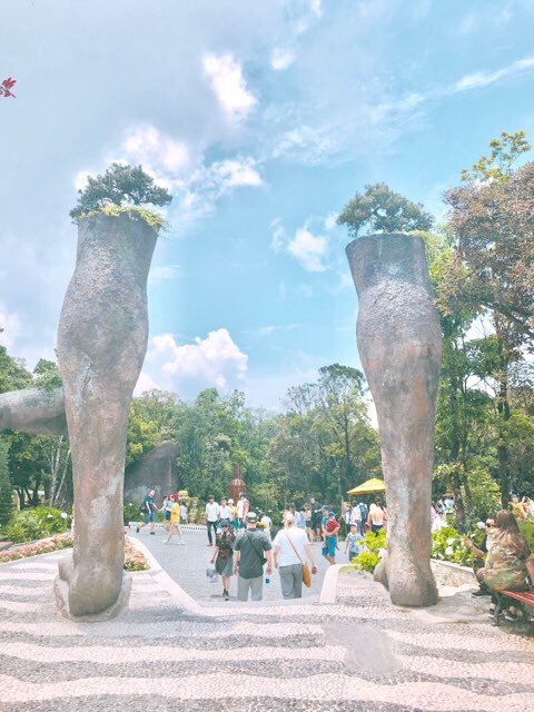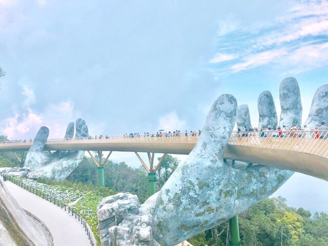 巨人の両手が橋を支える、その名をゴールデンブリッジ。そのほか、アートなオブジェなどが点々と展示しある。飲食やお土産も売っている。
